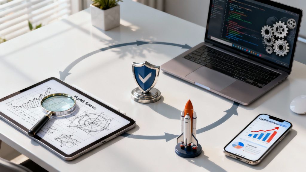 Startup? Looking to kickstart your project but need some assistance in defining your technical scope? Thanks to our extensive entrepreneurial background we are able to offer an extensive program including technical support and development. We can join your project at any stage: from the very beginning to MVP or right before market launch while providing professional technical and marketing teams to ensure your ideas come to life.