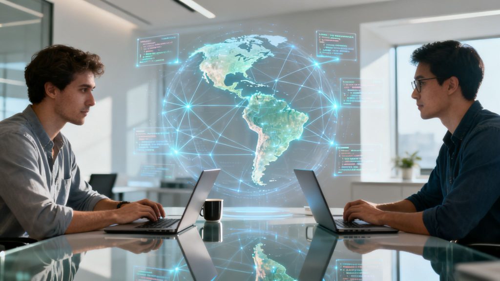 So, what does "nearshore" mean in practice? It's an outsourcing strategy where you partner with a tech company in a neighboring country. If you're based in the U.S., this typically means tapping into the deep talent pools in Latin America. For European businesses, it often points to the tech hubs of Eastern Europe.